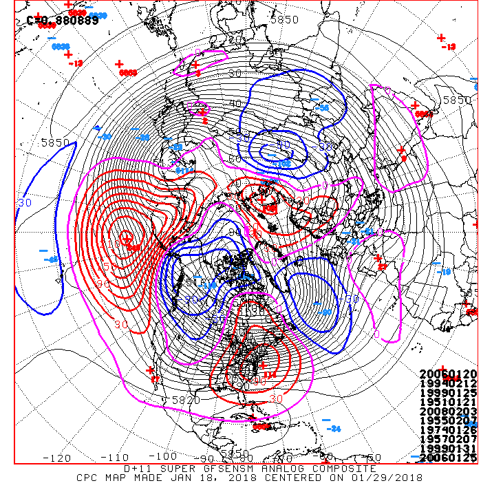 Way too soon to know the finer details in a highly volatile pattern for the Global Models to resolve over the next 10+ Days. The Day 11 CPC GEFS Super Ensemble Blend suggests a huge blocking pattern across the Artic into the N Pacific with a trough in the West into the Plains and warm along the East Coast. The upcoming pattern looks very progressive with a couple of storm systems bringing quick shots of cold air around the 27th of January and just beyond. I believe that much of that very cold air currently over Siberia will begin to cross the Arctic Circle and build across Alaska and Canada in the next 10 days or so. We will look at things a bit closer next week and see what our sensible weather may bring toward the end of January and the first half of February.vci_guy2003 wrote:What do the models tell us for early Feb?