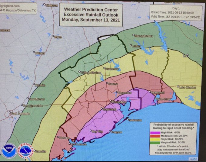 High risk of flash flooding…reserved for the most serious threats…have been expanded slightly north to include SE Harris County and all of Brazoria, Galveston, and Chambers Counties #houwx #txwx