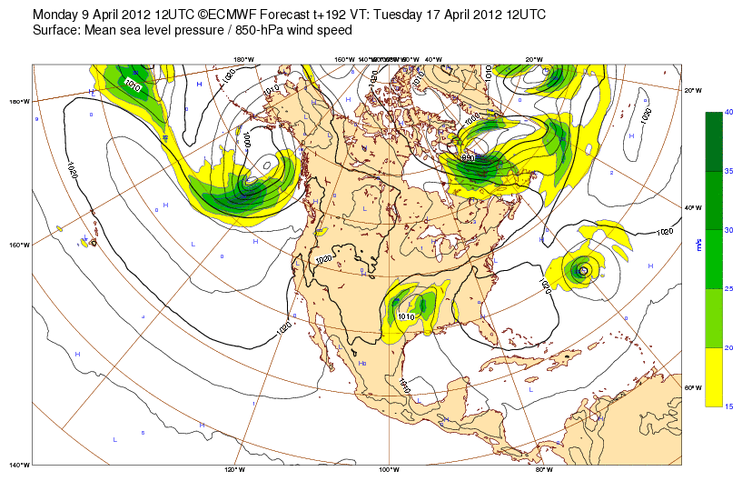 The Euro is predicting quite high pressures in the Atlantic this hurricane season and low pressures in the East Pac. How did the Euro do for last year? It predicted very low pressure in the Atlantic and high pressure in the East Pac, which verified nicely. The current ENSO analogs for 2012 don’t have a MSLPA similar to what is predicted.
