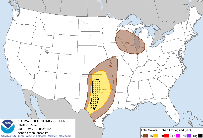 The 12Z WRF/NMM is suggesting an impressive blow up of convection overnight W Central TX spreading E tomorrow across Central/SE TX. I suspect we'll see another Slight Risk issued for tomorrow for the region with large hail and damaging winds being the primary threat. We still cannot rule out a possible tornado or two and the possibility of super cells developing out ahead of the dry line as the squall line marches E during peak heating. We will see...
