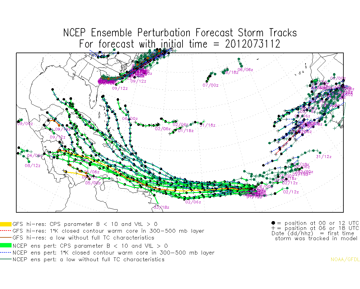 As is normal for this time of year, the Atlantic basin tropical activity usually shows an upswing in activity starting in early August. Factors over the Atlantic basin do suggest that the potential for tropical cyclone formation will be increasing over the next several weeks in part due to climatology and in part due to increasingly favorable atmospheric factors within the basin. Tropical waves leaving Africa are slightly more well defined and robust, stable and dry African air moving westward off Africa is slowly subsiding, a fairly favorable MJO pulse will be moving into the basin over the next 2 weeks. Forecast models are resolving these increasingly favorable factors with increasing tropical activity. However one must remember that we are borderline ENSO warm (El Nino) in the Pacific and this can negate development in the Atlantic basin with increased wind shear even when all other factors are favorable.