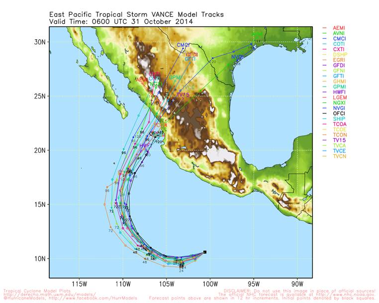 The global guidance regarding 93E S of the Gulf of Tehuantepec in the Eastern Pacific continues to be in good agreement regarding the track. Some of the overnight Quantitative Precipitation Forecasts (QPF) were most impressive for portions of Texas/Oklahoma/Arkansas and Northern Louisiana suggesting potentially anywhere from 3 to 9 inches of rainfall with isolated higher totals as the cut off upper low/trough meanders across the Southern Plains with the remnants of future Eastern Pacific Hurricane Vance and its moisture. It is too soon to know the finer details, but after a long dry spell in October it will be worth monitoring into the weekend.