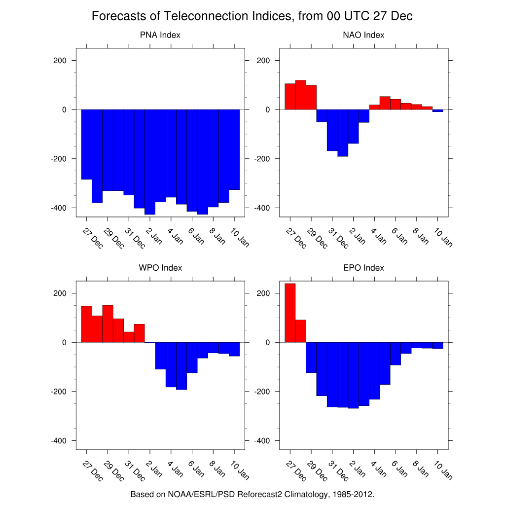 Would like to see the PNA a little closer to neutral, but that's a nice TC chart.srainhoutx wrote:The overnight trends via the Teleconnection Indices as well as the Operational and Ensemble schemes around Day 10 and beyond suggest Winter returns to our part of the World. Enjoy this late December warmth while we have it. It appears changes are on the horizon.