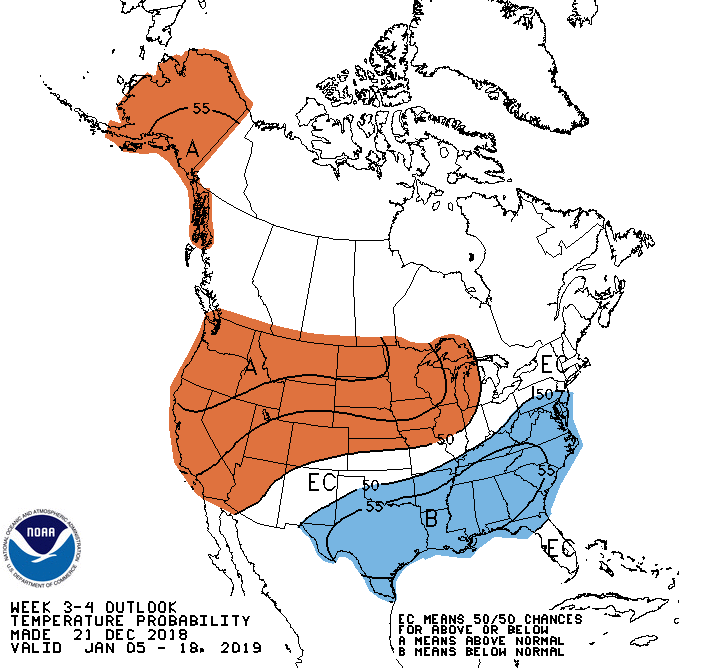 So for those that live and die by every model run... use them cautiously at this time as confidence in the forecast beyond the New Year is uncertain. Regardless of what our weather may be heading into 2019, I don't see any significant cold heading down this way... certainly not as cold as last year when we were getting down into the teens (January 17, 2018). But the possibilities are there for mid January into early February for a cooler and wetter period. Just whether that 'wetter' scenario brings any liquid fun is the $64,000 question... ;)