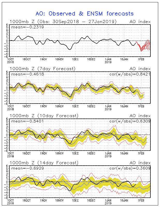 A Hemispheric Pattern reshuffle is looking possible as February begins. The Arctic Oscillation has become negative and the forecast suggest a much below negative state may be likely.