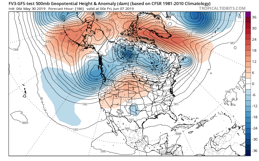 The first day or two of June look warm and relatively uneventful, but changes are brewing for next week. Our old friend the Central America monsoonal gyre appears to attempt develop an area of disturbed weather in the Bay of Campeche. The first impressive surge of deep tropical moisture from the NW Caribbean Sea is pulled NW in the Western and NW Gulf of Mexico. PW's of near 2.5 inches or higher arrive along the Gulf Coast early next week as a robust upper air disturbance moves in our direction from South California.