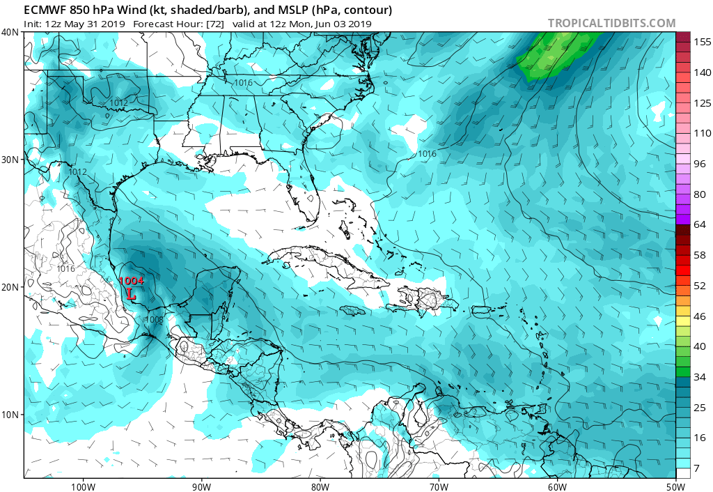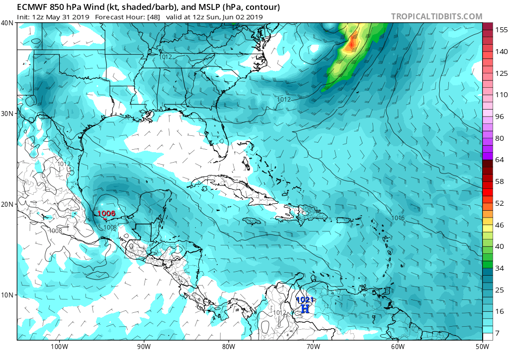 Well neither the GFS or the Euro have much rain across southeast TX. Maybe an inch. Think those totals are going to increase?Belmer wrote: ↑Sat Jun 01, 2019 1:34 pmIF 91L doesn't fully move onshore and instead rides up the Mexico coastline into south TX, we'll still be on the 'dirty' side of the system so-to-speak since 91L will be southwest of SETX. This will bring an onslaught of moisture fetched our way as it moves north and then probably NE near the TX/LA border. As the upper level trough out near California begins slowly moving eastward, 91L will begin to feel its effects as shear ahead of the trough should increase from south-north which will really elongate the system making it difficult for it to maintain a tight closed circulation. If 91L does develop into a named storm, I don't expect it to strengthen more than a moderate TS and less likely it will intensify as it nears our coast. I think another thing that may inhibit any strengthening is dry air from Mexico possibly getting entrain into the system. Lots of wildfires in Mexico last week...