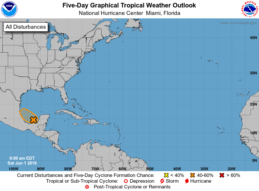 How would that track give us any rain? We would be west of the center. Seems like it would all get blown into Louisiana?srainhoutx wrote: ↑Sat Jun 01, 2019 1:14 pm The 2 PM EDT Update from the NHC gives the Bay of Campeche disturbance a 60% chance of developing the next 48 hours. The Weather Prediction Center morning UPDATED surface charts are suggesting a weak low along the East Coast of Mexico moving N and then NE between Day 3 and Day 6. Rainfall probabilities appear to be increasing as well.