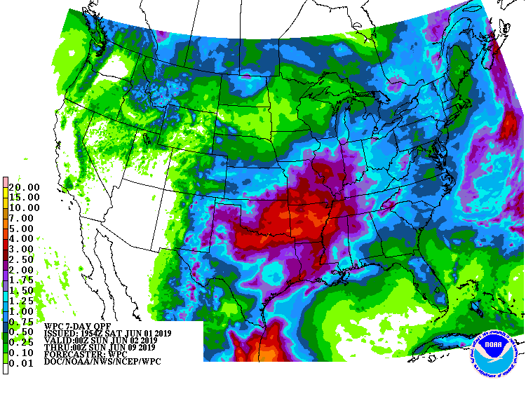 The afternoon 7 Day QPF for SE Texas suggests that Bryan/College Station are the "driest". While we know we will NOT see a repeat of 18 years ago when Allison came calling June 4, 2001, rain chances look encouraging. I'll take a quick moving system any day over a stagnant upper air pattern...