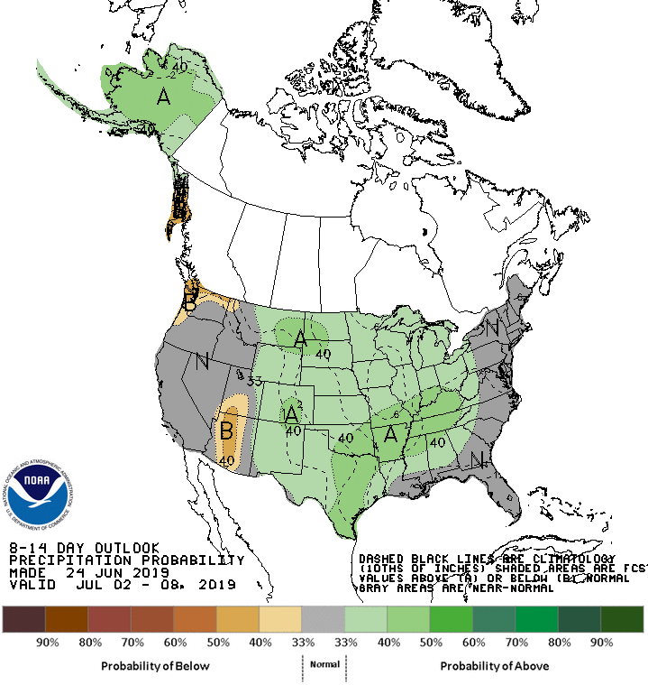 Harris Co will see some rain after this week on a day to day basis. Unless we up in the Brazos Valley get easterlies or tropical mischief, the sea breeze in July/August hits a wall around Navasota (aka the AggieDome).