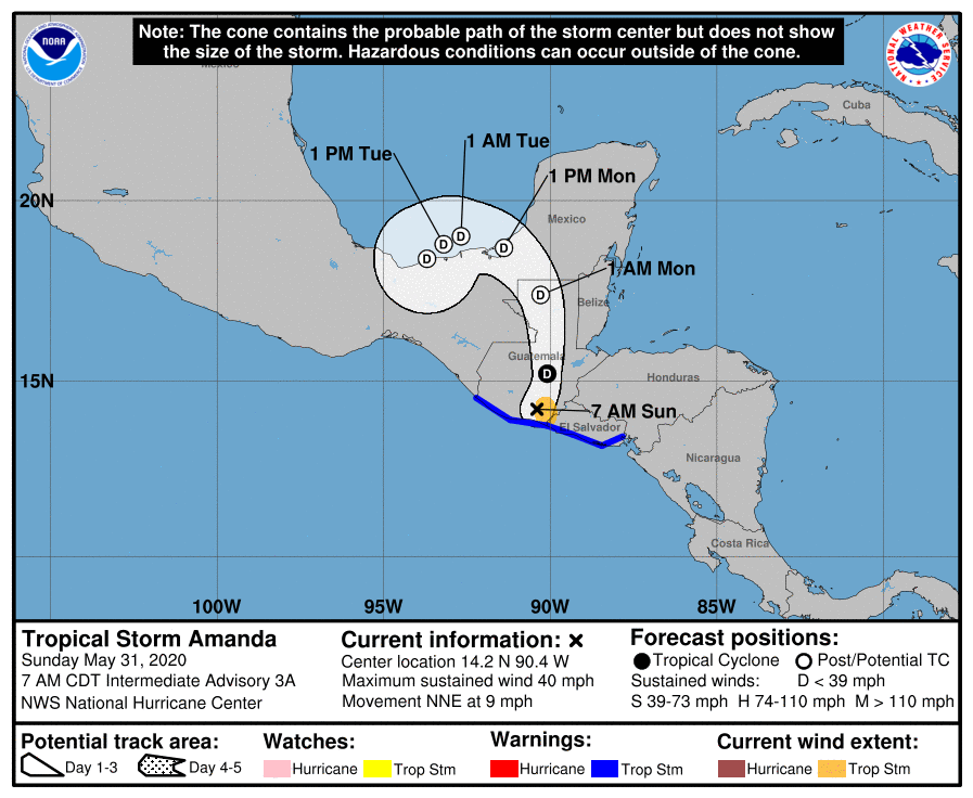 Things are moving along fairly quickly. NHC has highlighted the area in the BoC where the remnants of Amanda may slowly redevelop during the beginning of the week.