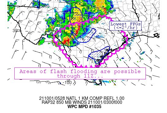 an isolated flash flood threat over the next 3-6 hours or so: 1)