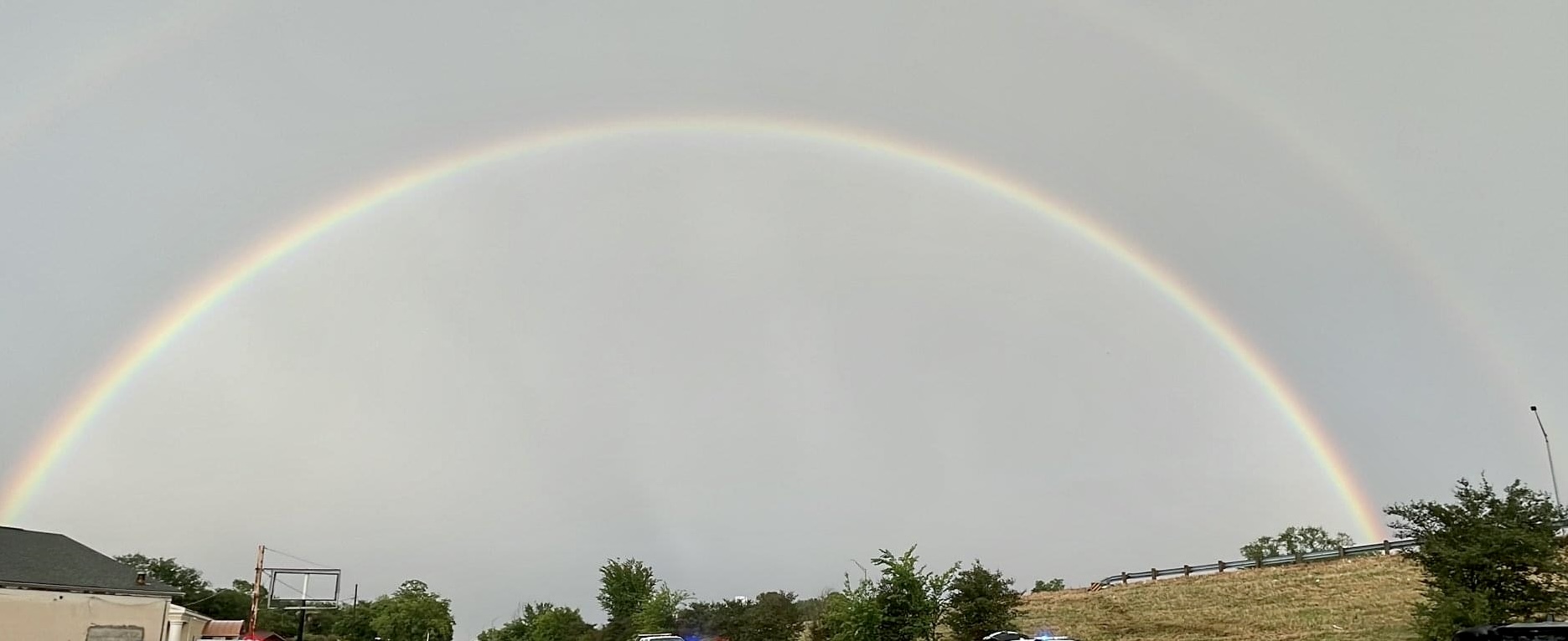 About an inch with today’s storms. Lightning and all packed a punch but finished with a full beautiful rainbow 🌈 to end this great evening.