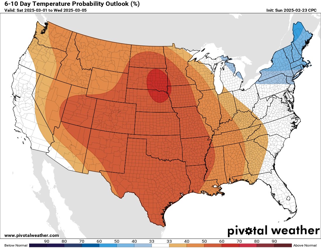 It’s not that difficult to get extreme cold here in early March. You’d be surprised. We got down into the teens before in early March.Stratton20 wrote: ↑Tue Feb 18, 2025 1:22 pm The ensembles have more of a - EPO/ slightly negative PNA, and the TPV anchored over hudson bay with a trough centered over the central US, MJO swings through phases 1-2-3 in march which are cold phases, its going to be pretty difficult to get big cold down here in march obviously, but below average through the first half of the month looks a little more likely now