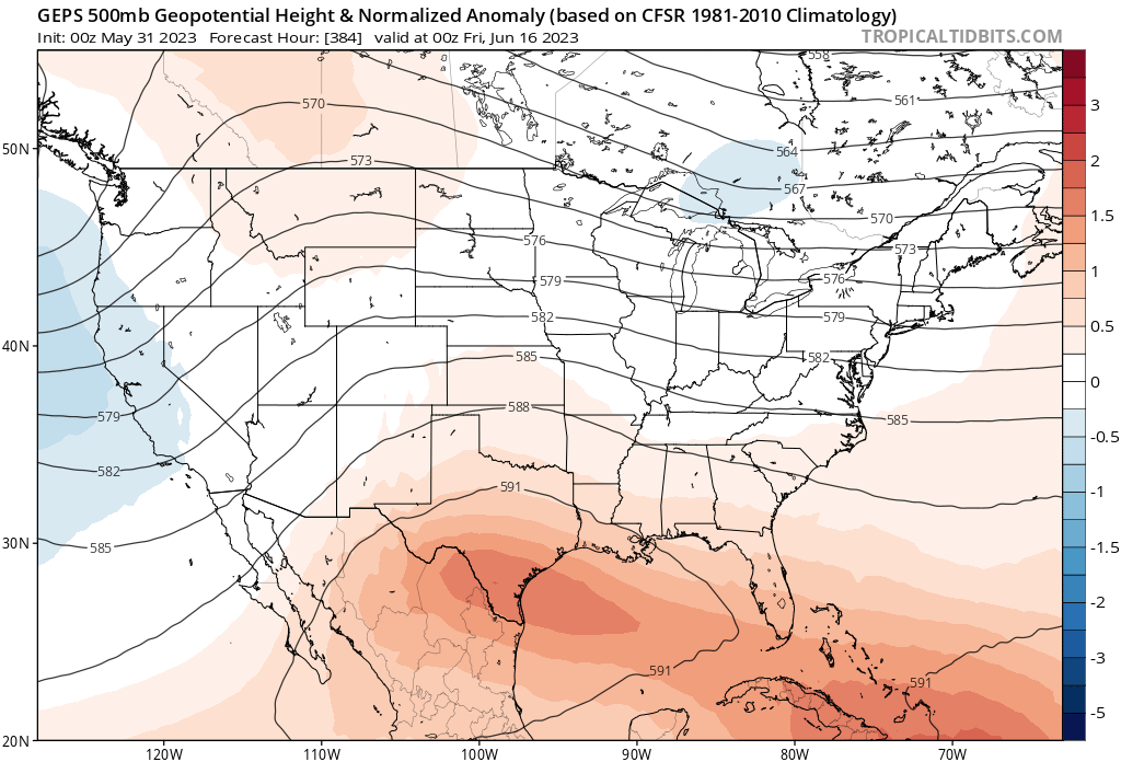 The ridge will be elongated after June 10. It's very, very bad.Stratton20 wrote: ↑Wed May 31, 2023 12:47 pm Good news is it doesnt appear the death ridge will build right over se texas, models are in agreement that the ridge will likely build over west texas, we will still be pretty hot, but the core of the heat should stay in central and west texas, could be worse