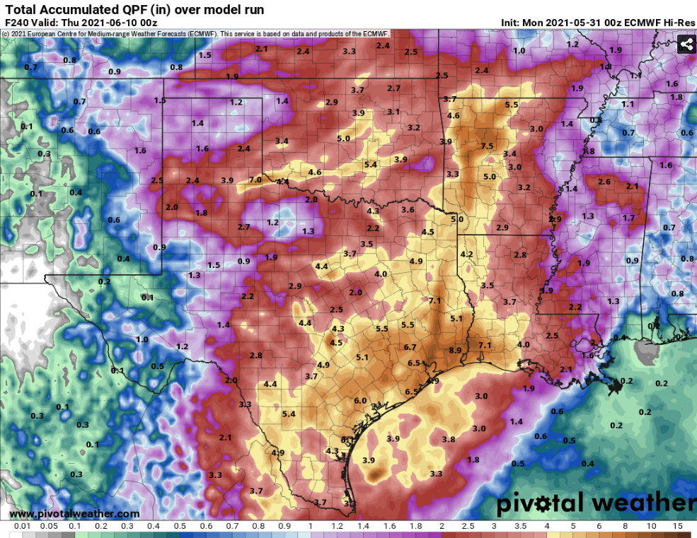 Solid 5”+ for me in Beaumont according to the latest QPF. I dont want it. We dont need anymore. Hurry, someone come and take it away...