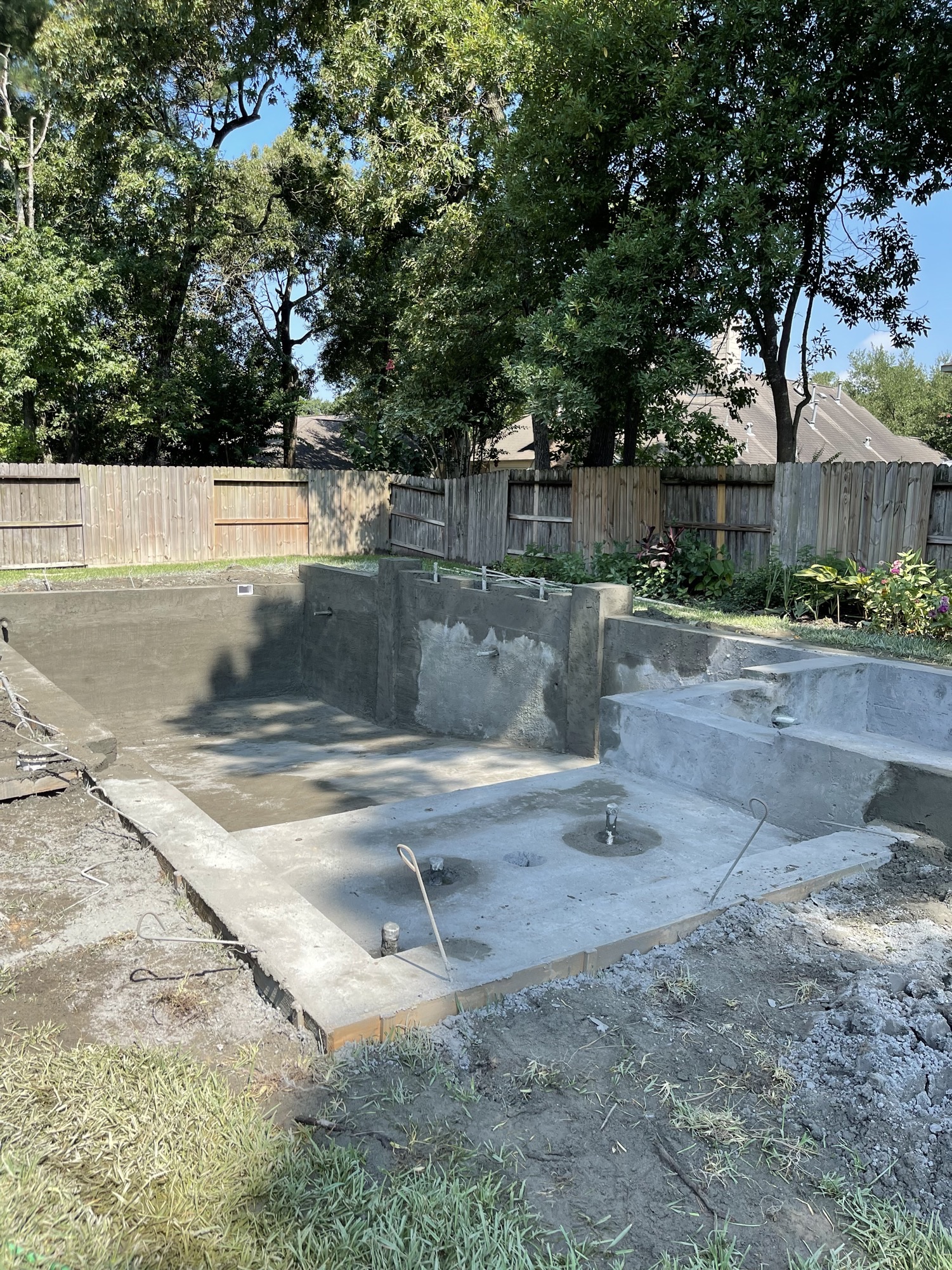 Gunite is in. It needs to cure before they can do much else except some plumbing work for awhile. We have passed the critical excavation/gunite stage so it can pour all it wants to now!