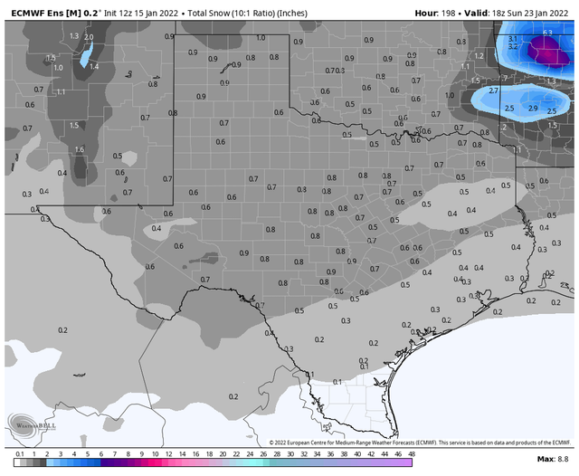 Also keep in mind those numbers are the average between all the ensemble members, the 12z Euro has some 1-2 inch isolated amounts in far western SE Texas