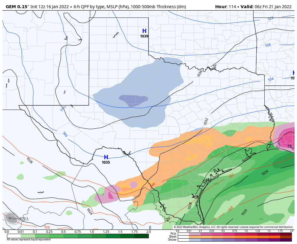 The Canadian seems to be getting onboard with the first piece of energy next Thursday/Friday FWIW.One thing to note is that the GEFS are mainly producing a winter storm from the first system that moves in after the front which is what the Canadian is showing.The storm that the operational GFS and ICON are developing over the weekend is actually another system.If the first piece of energy ends up being the "main" storm system we would have a better chane of seeing a winter storm due to colder air being in place behind the front.