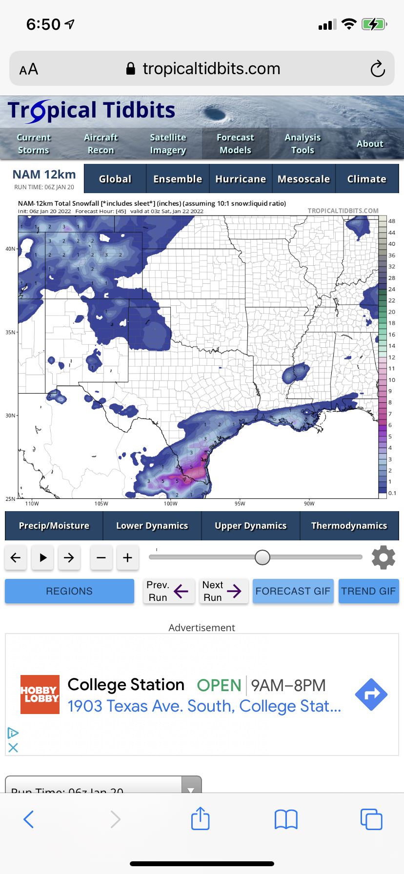 FWIW the 06z NAM 12k does try to bring frozen precip further north into SE Texas