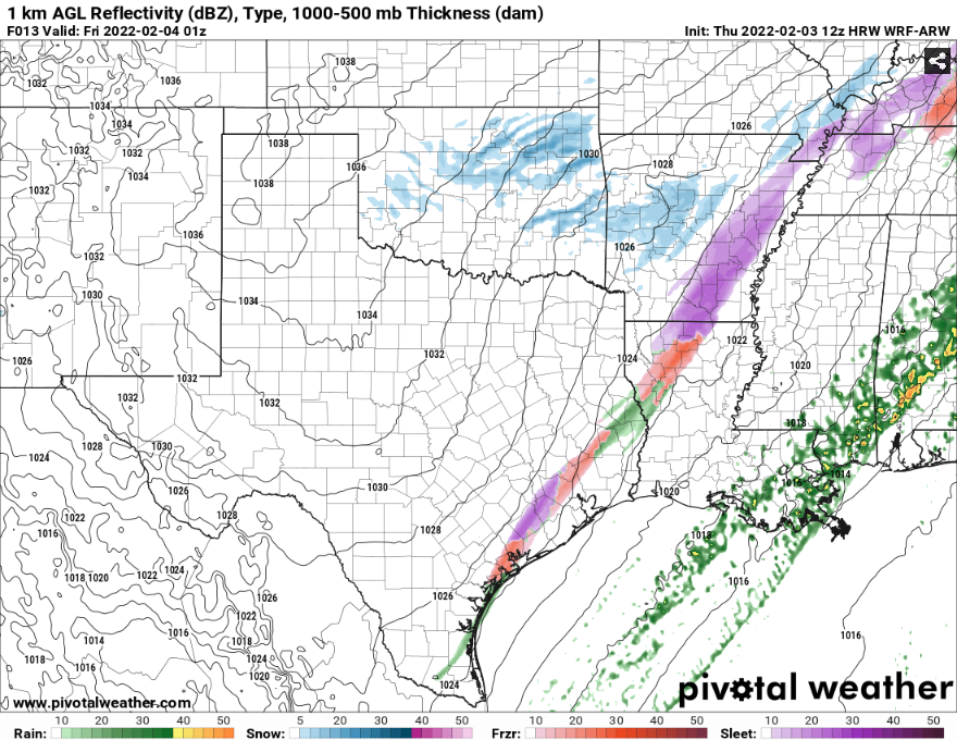 Yes,the big band of frozen precip over central and north Texas right now is the band that's suppose to move through later today.We'll have to watch and see if it dies out or not before getting here.