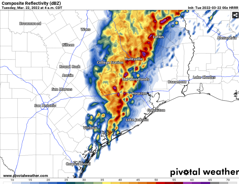 Everything avoids College Station. Heyooo.DoctorMu wrote: ↑Mon Mar 21, 2022 9:16 pmWeakened and literally lifted jumped over our location. Hook echo is now NE of me. TGStratton20 wrote: ↑Mon Mar 21, 2022 9:14 pm Ah I see, though I am hearing that the rotation is weakening