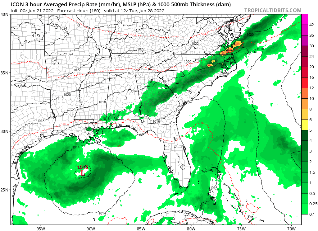 GFS looks pretty good even without showing the surface low it has a decent amount of moisture with the frontal boundary next week.Stratton20 wrote: ↑Tue Jun 21, 2022 11:52 am GFS doesnt really show much of anything next week with the surface low, we will see what the CMC and Euro have to say though