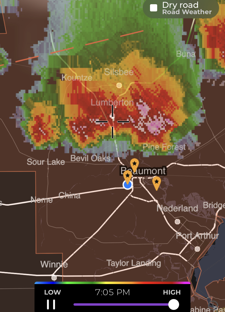 There's something weird with the HGX radar. Nothing was showing up at first, just blue/green blobs — then suddenly, the full storm cell models (complete with the yellows/reds and such) magically appeared.