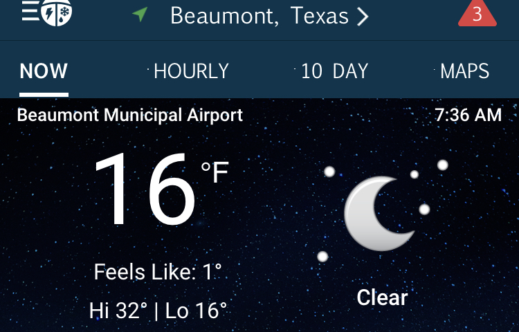 Got down to 13 degrees here in Conroe with a wind chill around -2 to -5. Love it. Nice, crisp, clear and cold as hell! Gonna go sit in my bow stand later for an evening hunt.