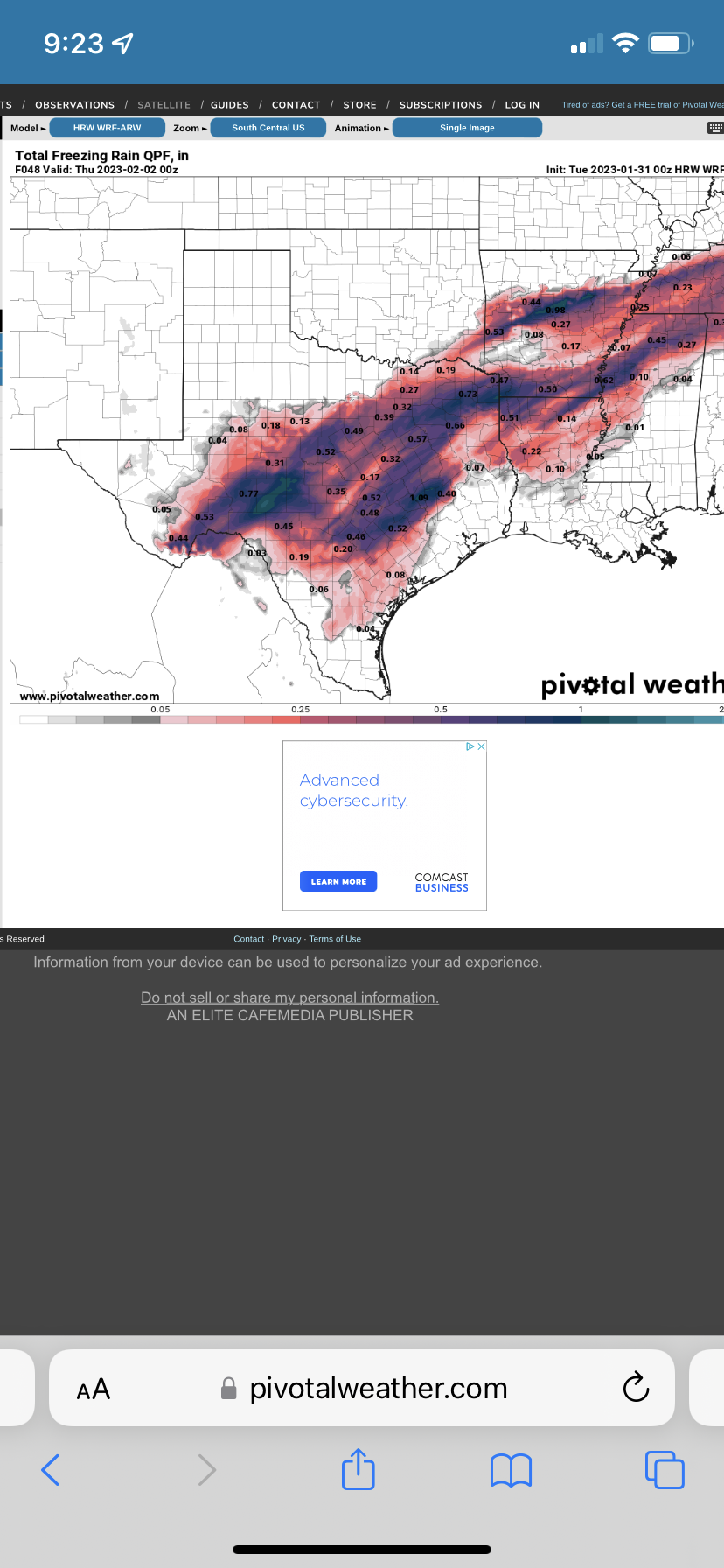 freezing rain occuring across the Brazos Valley/Piney Woods areas.