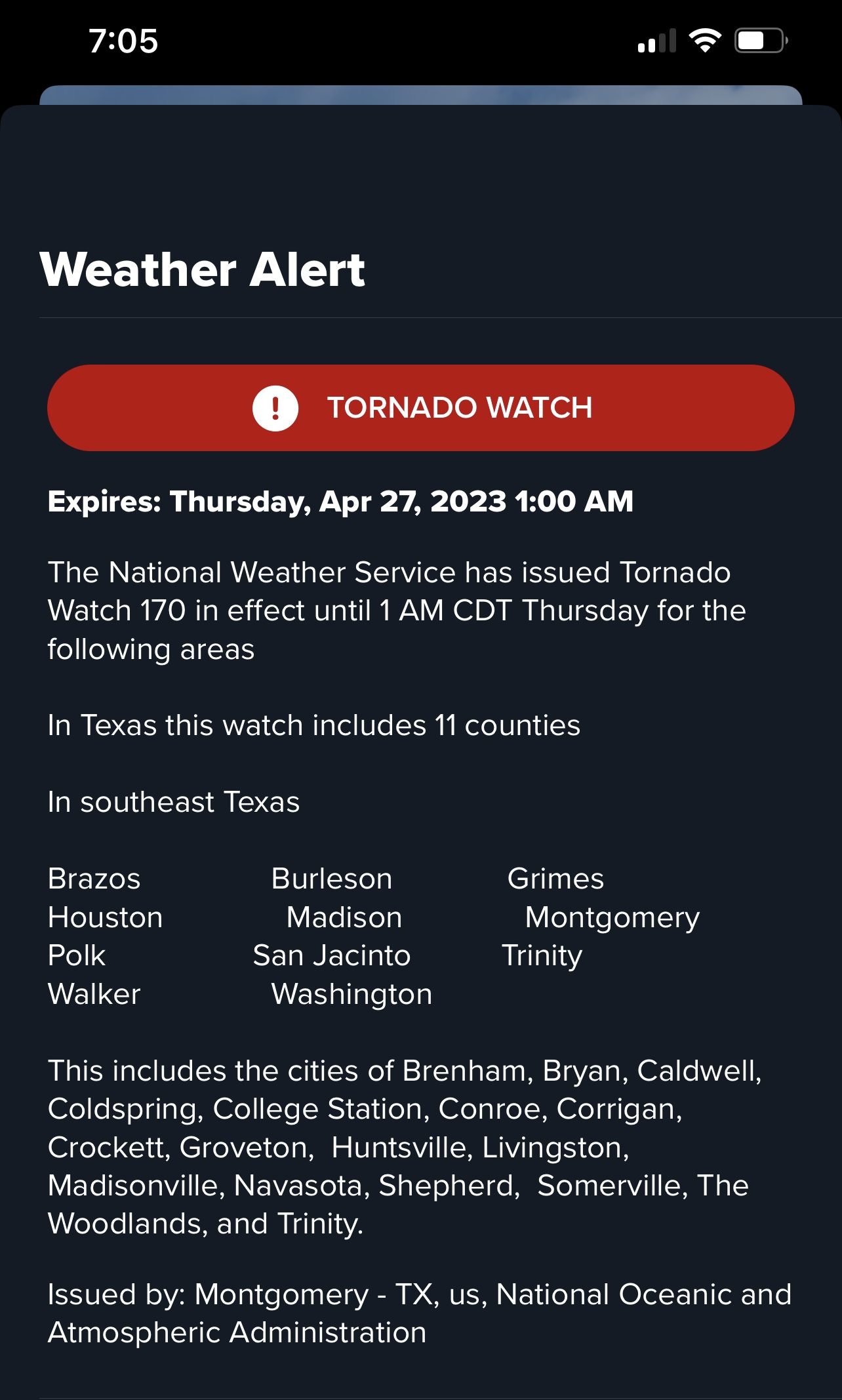 Im now under a tornado watch, lovely