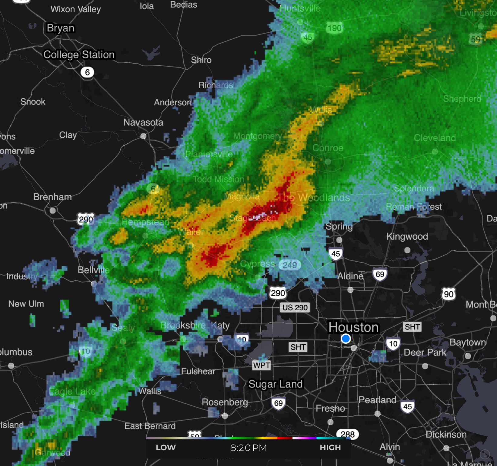 Looks like their may be some small hail heading into The Woodlands right now.Also the line of storms that’s supposed to come late tonight is forming west of I-35 at the moment.👀