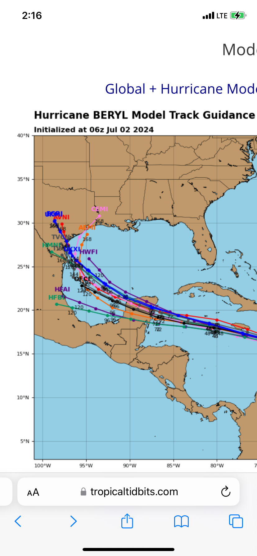 Let's keep the conversation on the subject of Beryl. Today will likely be a big day to determine the impacts of shear on the storm and hopefully a better consensus with models.