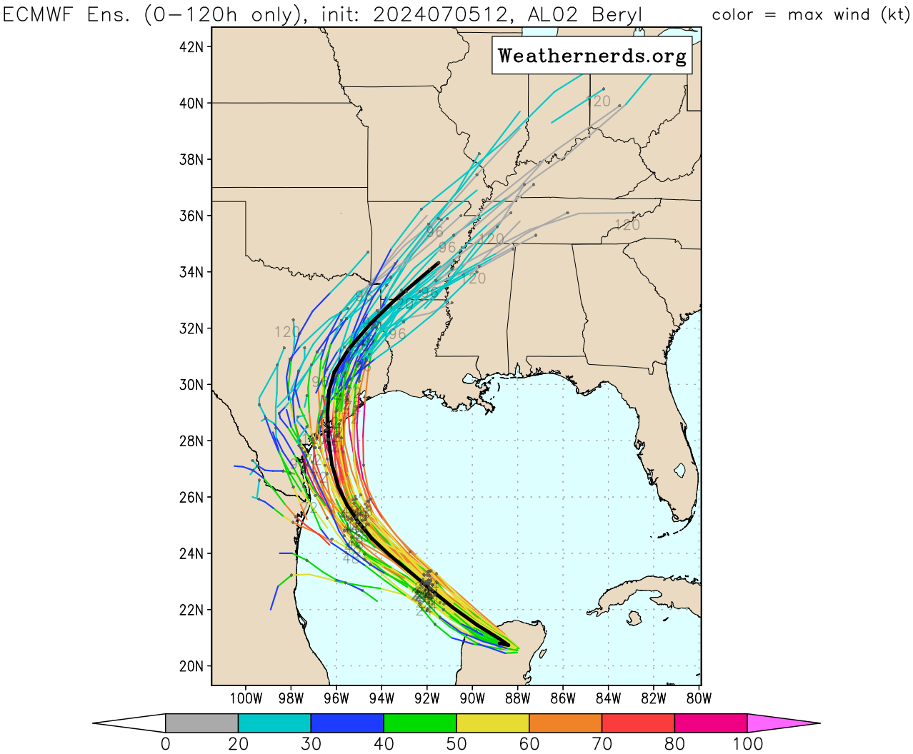 The trend in the ECMWF for #Beryl is definitely going in a direction we don’t want. Farther up the Texas coast, and intensifying.