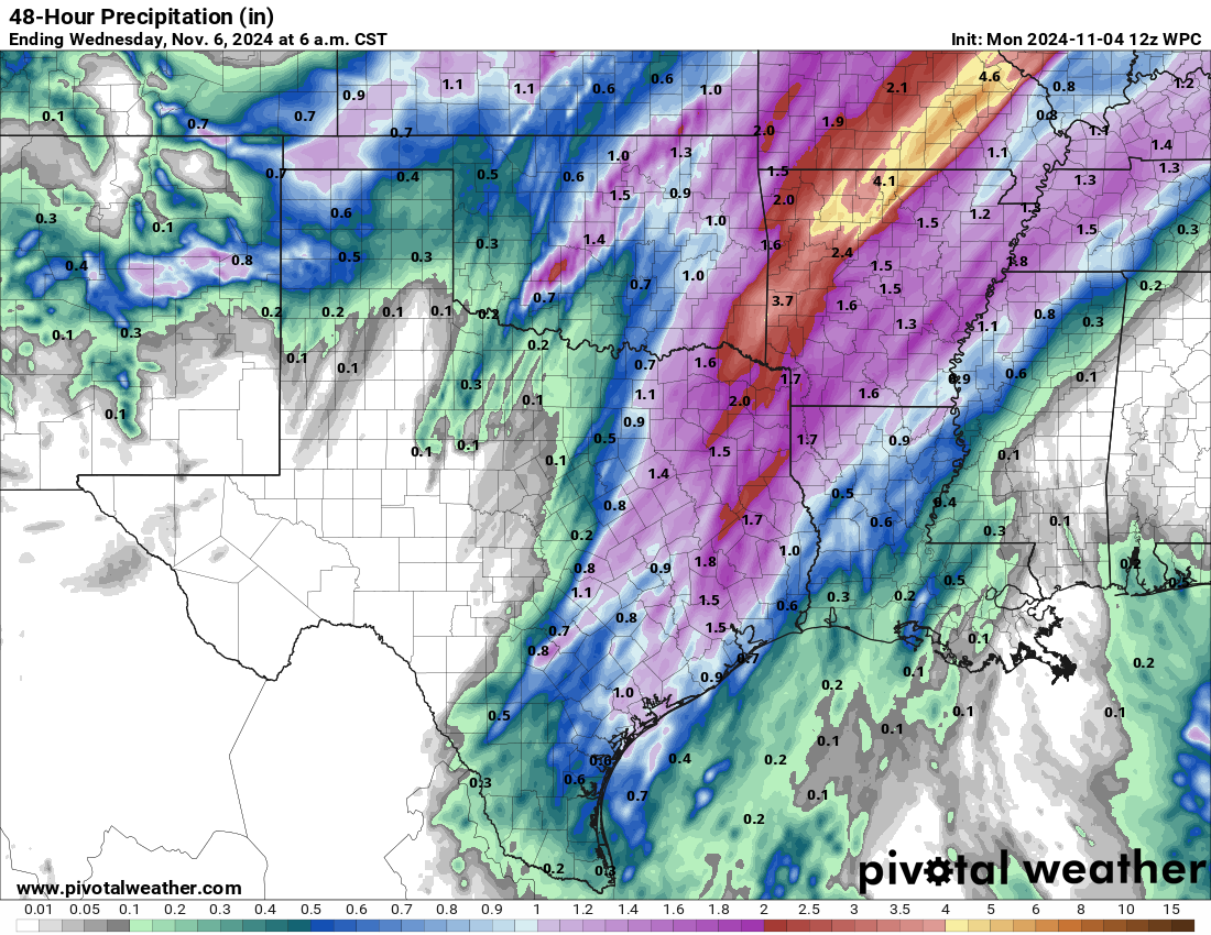 Here is the 48-hour WPC forecast. Hopefully the front tonight brings some widespread rain across SE Texas.