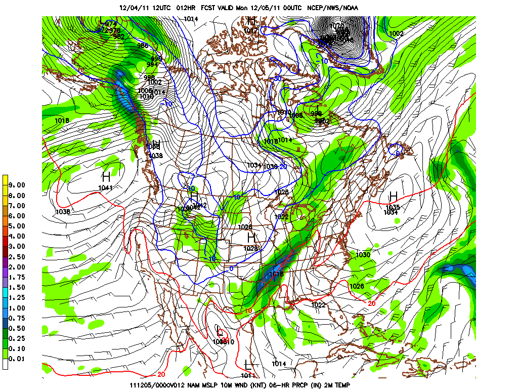 The 12Z NAM does suggest the front will be along the coast late this afternoon/evening. Than model also suggests a rather strong short wave rounding the base of the trough heading ENE. Yet another upper air disturbance is diving S toward Arizona along the western flank of the trough axis setting the stage for another round of precip for tomorrow.