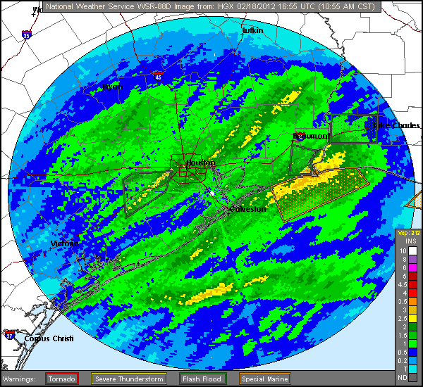 I picked up 3.03 overnight and this morning and .38 yesterday afternoon for a storm total of 3.41 inches in Richmond. Given the amount of water on the ground along HWY 90 near HWY 99 I would think there was some 4+ inches in the area of central/east Fort Bend County has suggested by the radar. Several creeks out here had not been this high since the April 18, 2009 event.