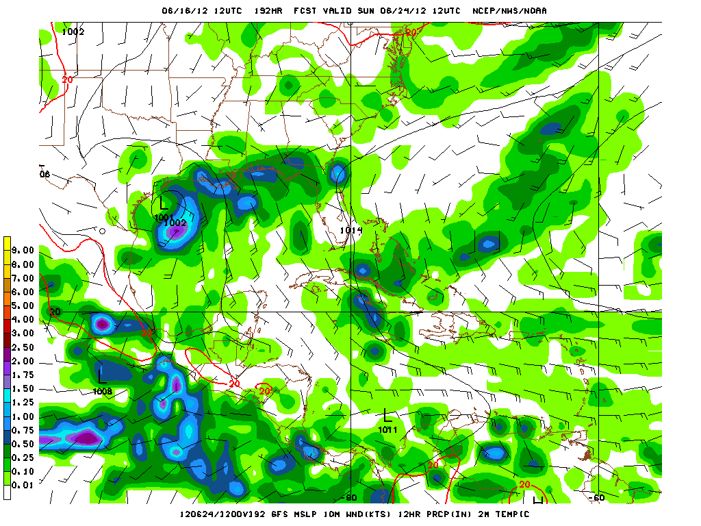 The 12Z Euro is suggesting a broad low pressure area in the Bay of Campeche developing around hour 120 (next Wednesday).