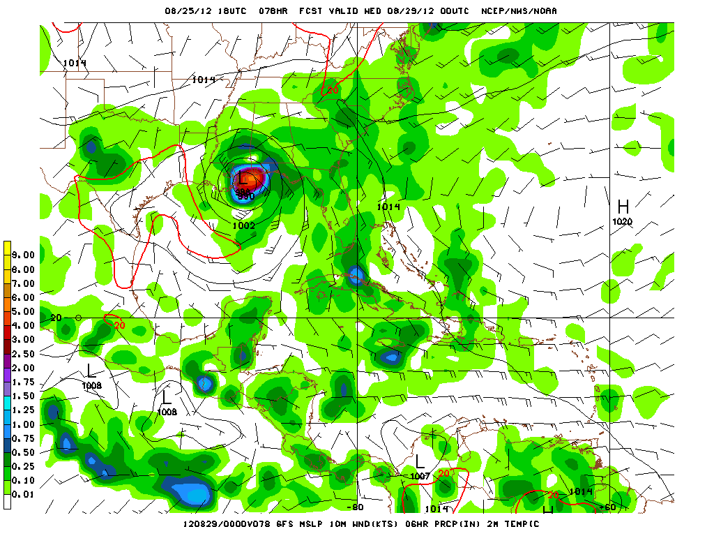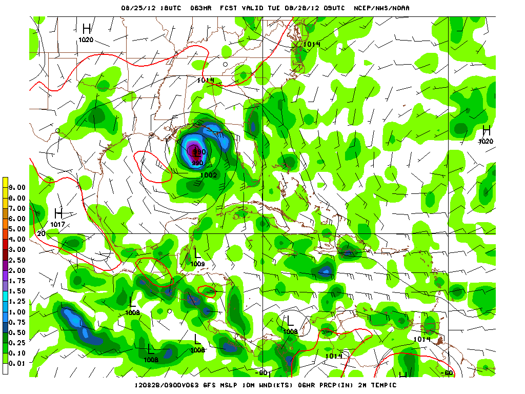 I guess it is time to start talking about it. This scenario has been a concern since a couple of days ago. There were/are indications that Isaac would pull stationary just off or on shore and get sent west across LA and on into Texas.