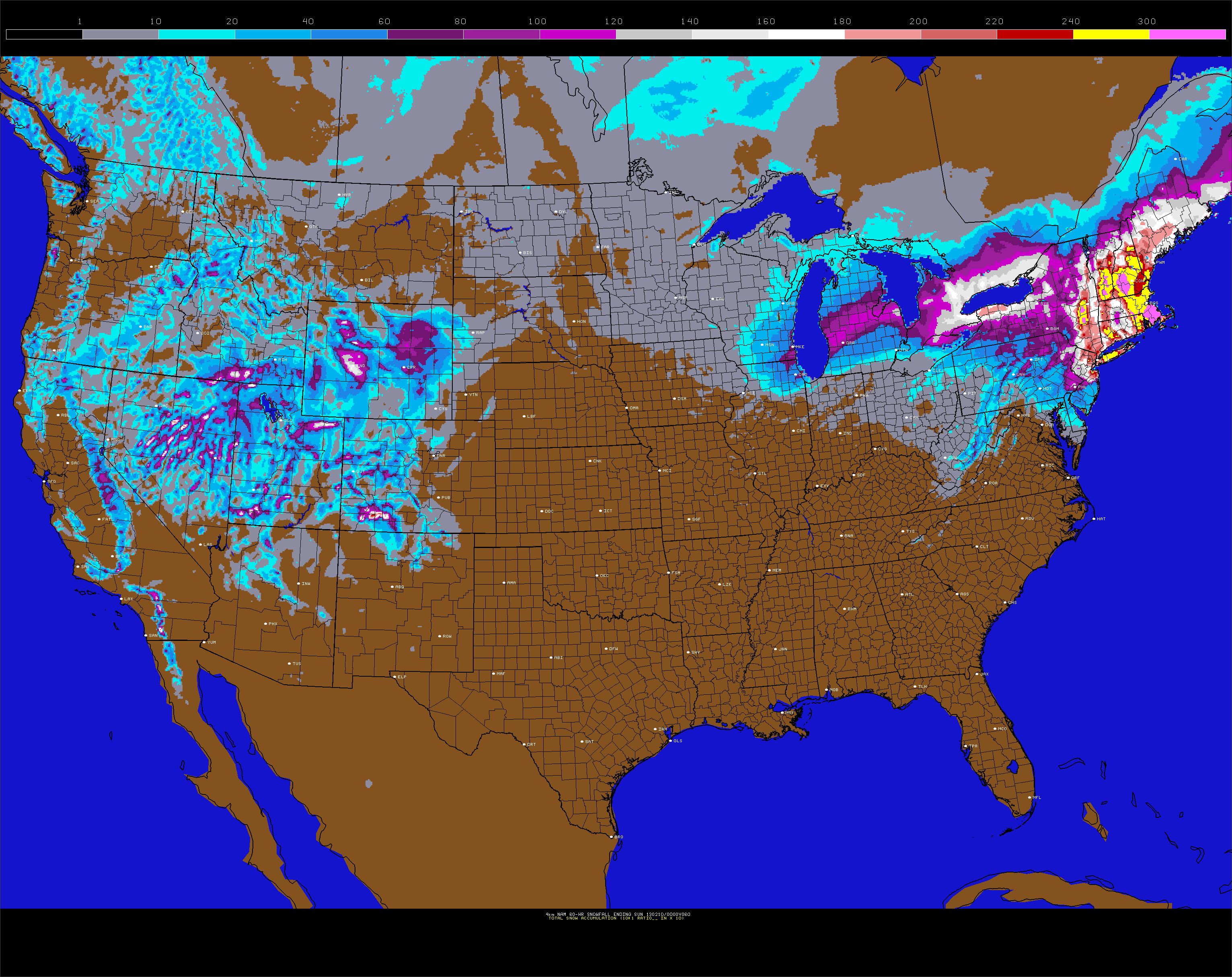 Since this appears to be one of the potentially bigger Winter Weather events in many years and will affect the major Megalopolis of the NE I-95 Corridor for the Philadelphia/New York City/Boston areas, we will keep information and photos here as we did with Super Storm Sandy. The latest short range meso guidance is spitting out totals of nearly 3 feet of snow and winds nearing Hurricane force beginning tomorrow and continuing into the weekend. It should be noted that major societal impacts from such an event, should it actually happen could be rather far reaching affecting air travel across the Globe. There are indications of 3-4 inch per hour snow fall rates with thunder snow as the dynamics will be very conducive a potentially crippling blizzard across that Region.