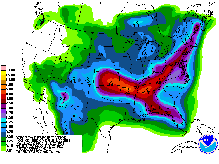 One more day of scattered storms before a brief few days of hot and muggy weather returns with a heat index near or a little above 100F returns. The guidance is suggesting a deep trough will begin to develop across the Eastern half of the US bringing abundant moisture to Kansas and the mid Mississippi Valley of E into the Mid Atlantic and SE. The fly in the ointment will be a rather strong mid/upper level disturbance that drops SE from Canada later this week as it rides around the upper ridge well to our W across the Pacific NW and may allow for yet another back door frontal boundary to sag SW into the Eastern half of Texas and Louisiana next weekend. One thing is very certain. We are not seeing a repeat pattern that plagued our Region the past two summers as an Upper Ridge remained present the entire summer season. Also of note, there are strong indications that the quiet tropics are about to awaken so as a reminder, be sure to check our Hurricane Central area for any tropical troubles that may be brewing across the Atlantic and Caribbean.