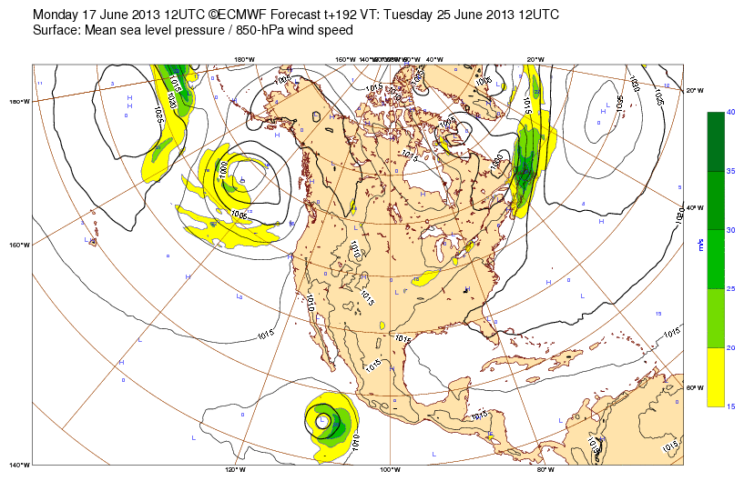 Over the past couple of days, the Globals have been fairly consistent in developing tropical cyclone in the EPAC. The GFS and Euro both suggest a general NW to NNW motion with the Euro hinting a possible approach to Cabo San Lucas in about 8-10 days.