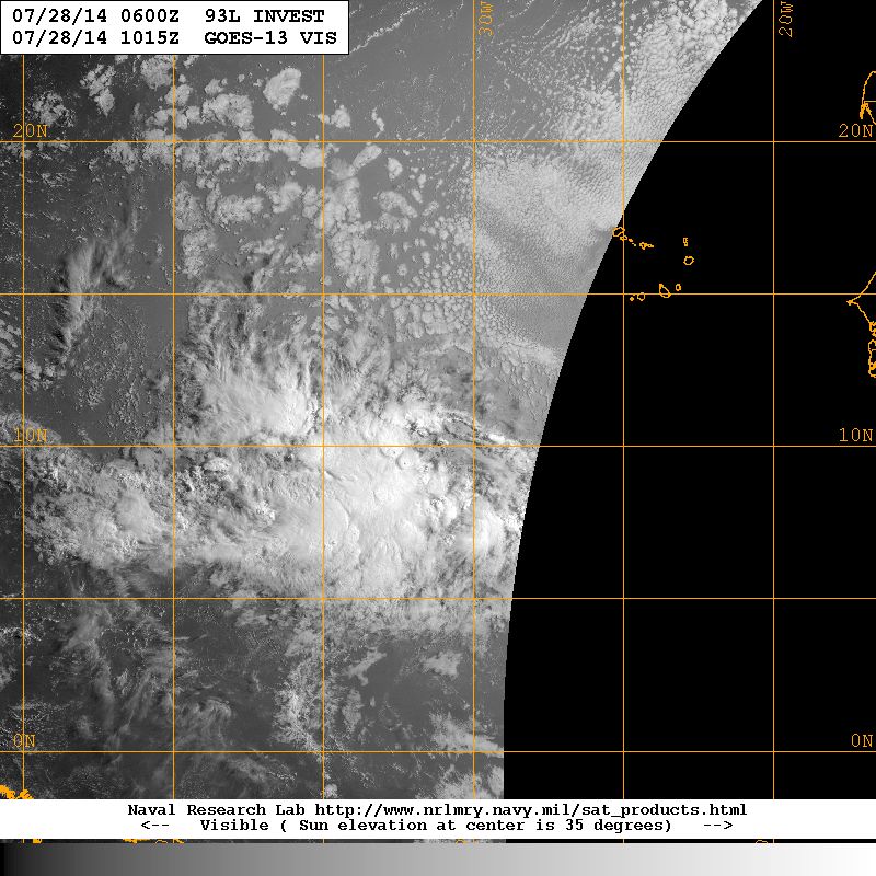 There continues to be a lot of dust to the N of 93L. Conditions appear marginal favorable for some development as long as this disturbance remains attached to the ITCZ where a rather low shear environment and instability are some what positive for TC genesis. I suspect the next Easterly wave exiting Africa may offer a slightly better environment over next couple of days as it continues W near 10N.