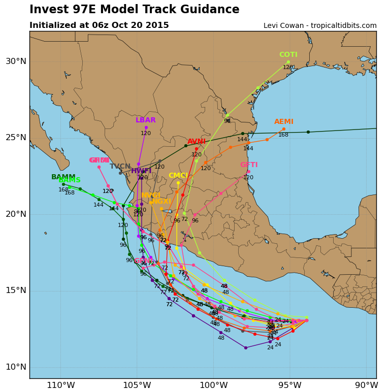 I see 92L is mindmelding with 97E (EPAC). There's a huge gyre over Central America and it seems like it's almost impossible for a weak low to escape. I think there should be enough moisture left to at least give south Texas some rain in a couple of days as the plume drifts north. The current models are now keeping the moisture even further west. I don't see any outlier solutions that would bring any kind of tropical system into any part of the Gulf over the next seven days, and all the fronts are going to stall and washout well north of central Alabama. The dry October might continue.