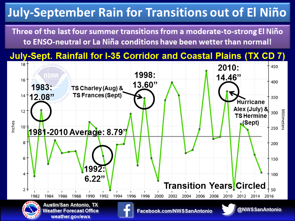 Interesting factoid from NWS Austin/San Antonio when we are in a transitioning year from El Nino...