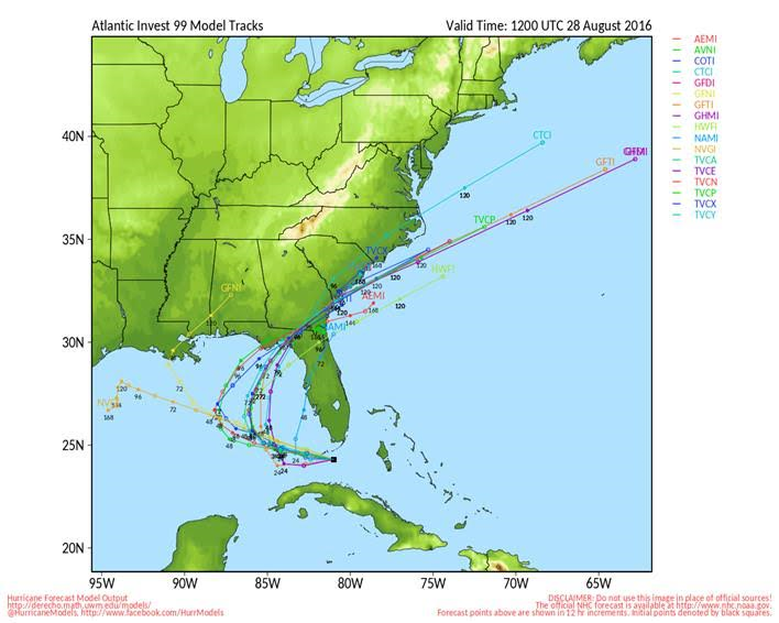 Global and hurricane forecast models have finally come into better agreement that 99L will continue to move west into the SE Gulf of Mexico tonight/Monday and then into the E/central Gulf on Tuesday. At that time the ridge of high pressure over the SE US is forecast to break down and erode as a weakness develops and trough crosses the NE US. Likely TD #8 nearing NC at this time will also help to weaken the ridge. This will result in a hard right (northward) turn of the system over the central Gulf of Mexico and it is even possible the system turns toward the NE/ENE, which is somewhat of a rare movement for this time of year in the Gulf of Mexico. How far the system moves into the east/central Gulf of Mexico and how strong the turn toward the N will determine where along the US Gulf coast/west coast of FL the storm will make landfall. Overall conditions appear favorable for intensification into a least a tropical storm over the Gulf of Mexico and a hurricane is certainly within the realm of possibilities.