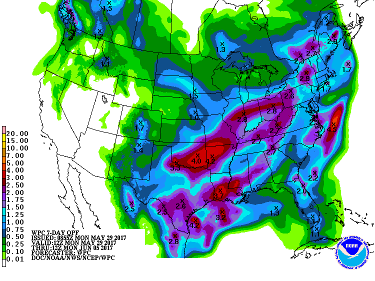 Global forecast models have been hinting off and on over the last couple of days that an area of low pressure may attempt to close off across the western Gulf of Mexico at some point between 6-1 and 6-5. Overnight global runs have come into better agreement that surface low pressure may in fact form in this region as energy form the eastern Pacific is brought northward into the Bay of Campeche and a trough axis resides along the TX coast. It would appear that energy from the eastern Pacific begins to interact with the coastal trough across the lower TX coast by late this week helping to lower surface pressures. The ECMWF develops a surface low and deepens it to nearly 1000mb while tracking it NE/ENE from off the S TX coast toward southern Louisiana. The CMC develops two separate lows….one along the coastal trough which moves NNW into the middle TX coast around June 1 and then a second off the lower TX coast similar to the ECMWF model. The GFS produces no closed system over the western Gulf.