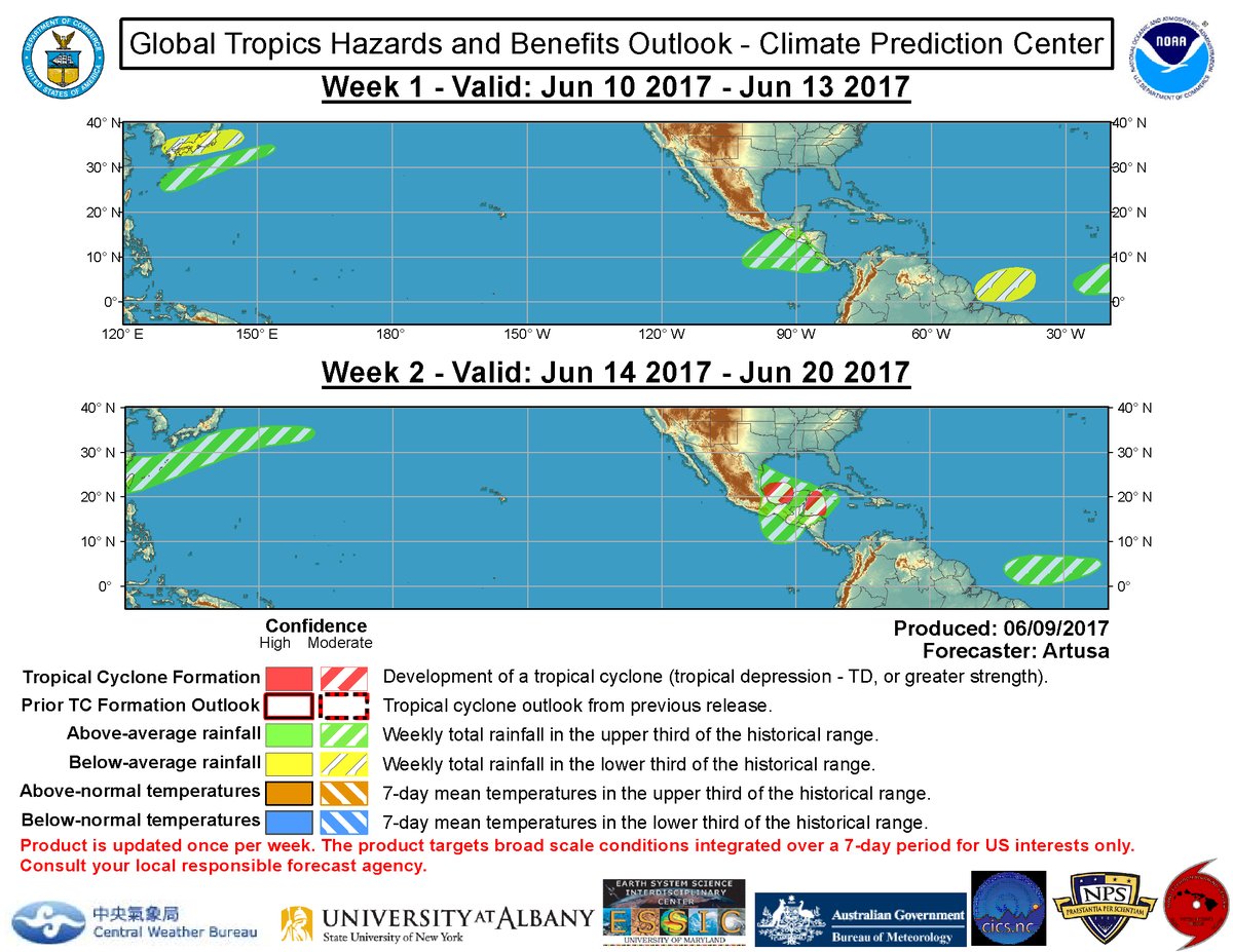 As Scott mentioned, we are seeing signs that the monsoonal trough with several broad spurious low pressure systems attempt to organize out of the monsoonal trough slop as it lifts North from. Central America. Typically these disturbances are slow to develop, if they do and can be prolific rain makers.