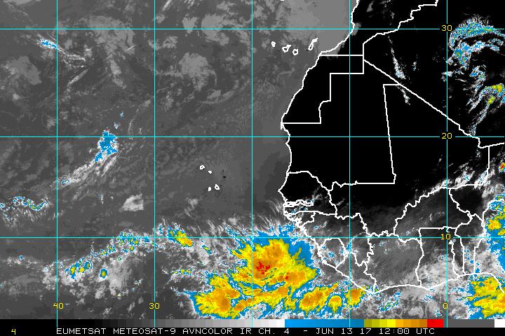 Rather strong wave for June in the eastern Atlantic just off the African coast. Very aclimatological but an interesting feature to watch...