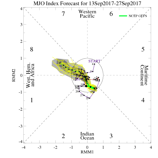 The current Hemispheric Pattern suggest we are in a subsidence phase regarding the MJO and no Kelvin Wave activity.